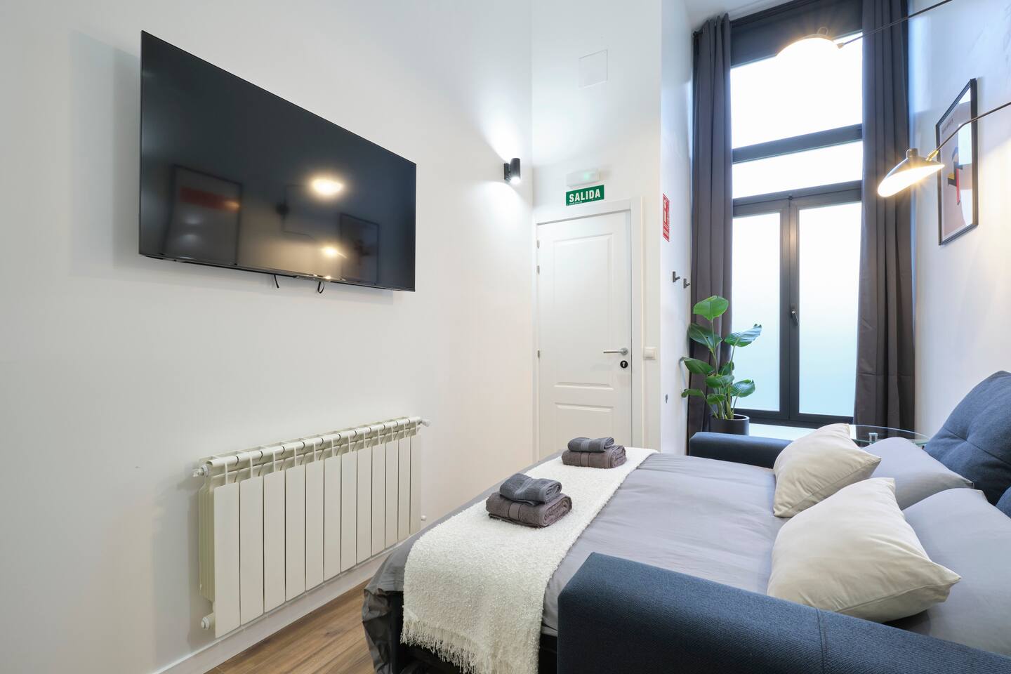 Bright, Quiet, and Newly Renovated Studio in Central Madrid Discover our brand-new, exceptionally bright, and tranquil apartment, perfectly situated in the heart of Madrid. You'll be right next to the vibrant neighborhoods of Acacias and Embajadores, and just a stone's throw from the beautiful Madrid Río. Designed for ultimate comfort, this studio is packed with amenities: high-speed Wi-Fi, air conditioning and heating, two Smart TVs, and a fully equipped kitchen with a microwave, coffee maker, kettle, induction hob, fridge, and complete dinnerware set. You'll also find a hair dryer and convenient USB charging ports. Enjoy a truly comfortable stay with cotton bed linens and viscoelastic pillows; fresh towels and all essentials are included. Located on a very quiet street, this recently reformed studio offers a peaceful escape from city noise, while keeping you right in the bustling center of Madrid.