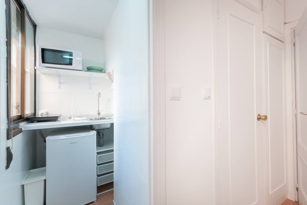 Bright and cozy studio at the very historical city center. Old guesthouse refurbished in homely studios. Full equipped with Hi Speed Wifi, Air Conditioning, Heating, SmartTV, Fridge, Induction Kitchen, Hair Dryer, etc. Located near to Atocha Station, Reina Sofia museum and Retiro Park You will be at the very city center but you will not ear any noise, the studio has been refurbished recently. Terraces, cafeterias, theatres, museums… all inside the neighborhood!
