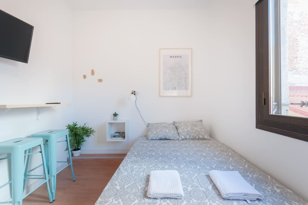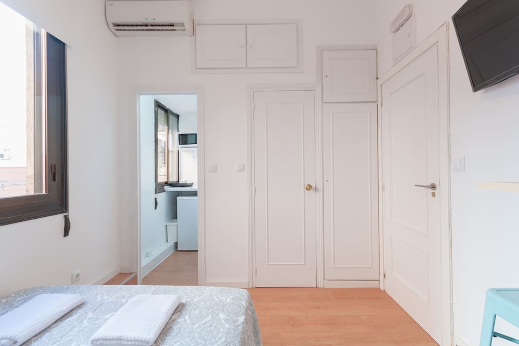 Bright and cozy studio at the very historical city center. Full equipped with Hi Speed Wifi, Air Conditioning, Heating, SmartTV, Fridge, Induction Kitchen, Hair Dryer, etc. Located near to Atocha Station, Reina Sofia museum and Retiro Park You will be at the very city center but you will not ear any noise, the studio has been refurbished recently. Terraces, cafeterias, theatres, museums…all inside the neighborhood! Connected by buses and 4 metro lines. Close to Plaza Mayor Sol Square, to Kings palace, to San Miguel Market, Almudena Cathedral, also close to Prado Musseum, Retiro Park and in front of Reina Sofia Musseum. The apartment is surrounded by food markets, fruit stores, etc. Historical neighborhood, very well known by its bohemian environment and its street life, it is also very secure. The apartment is based on a 1st floor and the building has elevator.