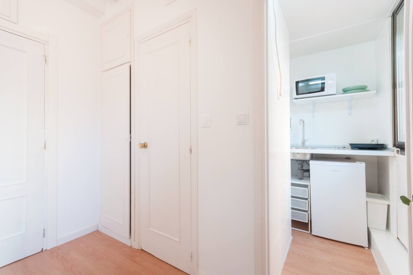 Bright and cozy studio at the very historical city center. Old guesthouse refurbished in homely studios. Full equipped with Hi Speed Wifi, Air Conditioning, Heating, SmartTV, Fridge, Induction Kitchen, Hair Dryer, etc. Located near to Atocha Station, Reina Sofia museum and Retiro Park You will be at the very city center but you will not ear any noise, the studio has been refurbished recently. Terraces, cafeterias, theatres, museums… all inside the neighborhood! Connected by buses and 4 metro lines. Close to Plaza Mayor Sol Square, to Kings palace, to San Miguel Market, Almudena Cathedral, also close to Prado Musseum, Retiro Park and in front of Reina Sofia Musseum. The apartment is surrounded by food markets, fruit stores, etc. Historical neighborhood, very well known by its bohemian environment and its street life, it is also very secure. The apartment is based on a 1st floor and the building has elevator.
