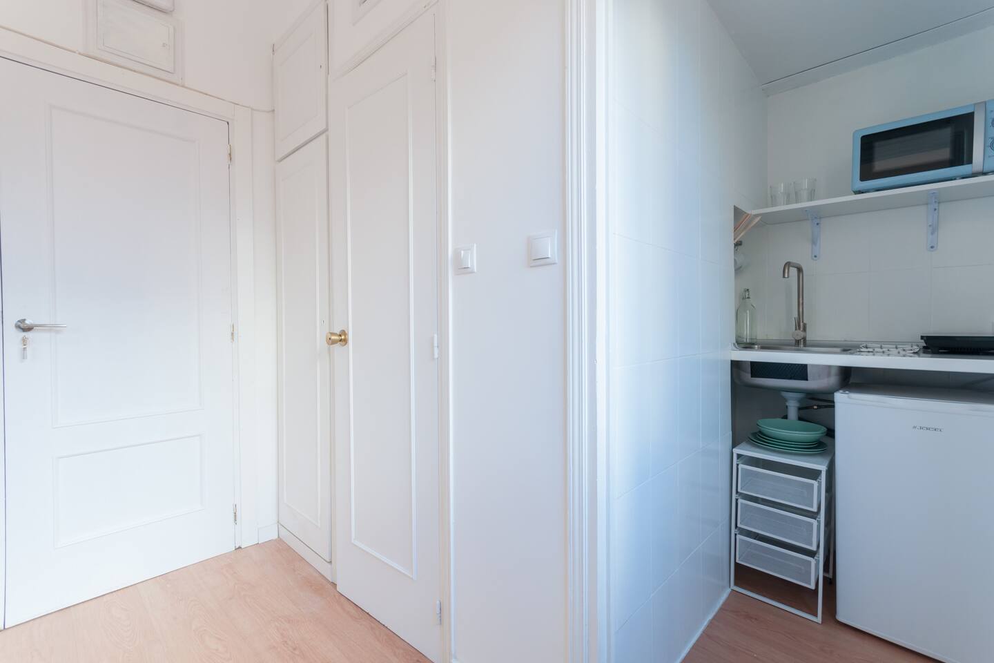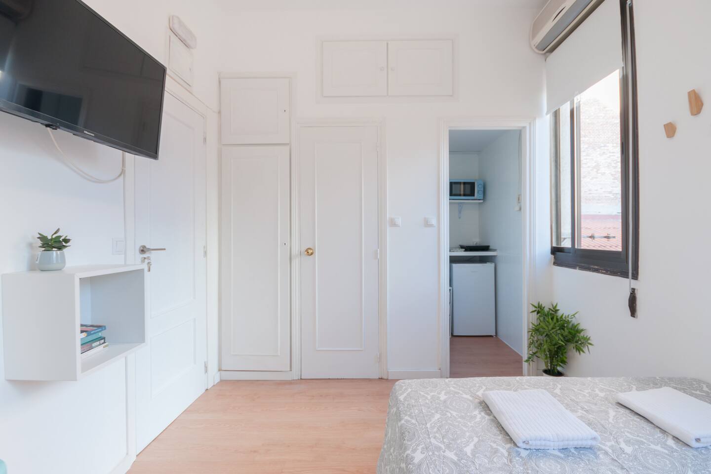 Bright and cozy studio at the very historical city center. Old guesthouse refurbished in homely studios. Full equipped with Hi Speed Wifi, Air Conditioning, Heating, SmartTV, Fridge, Induction Kitchen, Hair Dryer, etc. Located near to Atocha Station, Reina Sofia museum and Retiro Park You will be at the very city center but you will not ear any noise, the studio has been refurbished recently. Terraces, cafeterias, theatres, museums… all inside the neighborhood! Connected by buses and 4 metro lines. Close to Plaza Mayor Sol Square, to Kings palace, to San Miguel Market, Almudena Cathedral, also close to Prado Musseum, Retiro Park and in front of Reina Sofia Musseum. The apartment is surrounded by food markets, fruit stores, etc. Historical neighborhood, very well known by its bohemian environment and its street life, it is also very secure. The apartment is based on a 1st floor and the building has elevator.